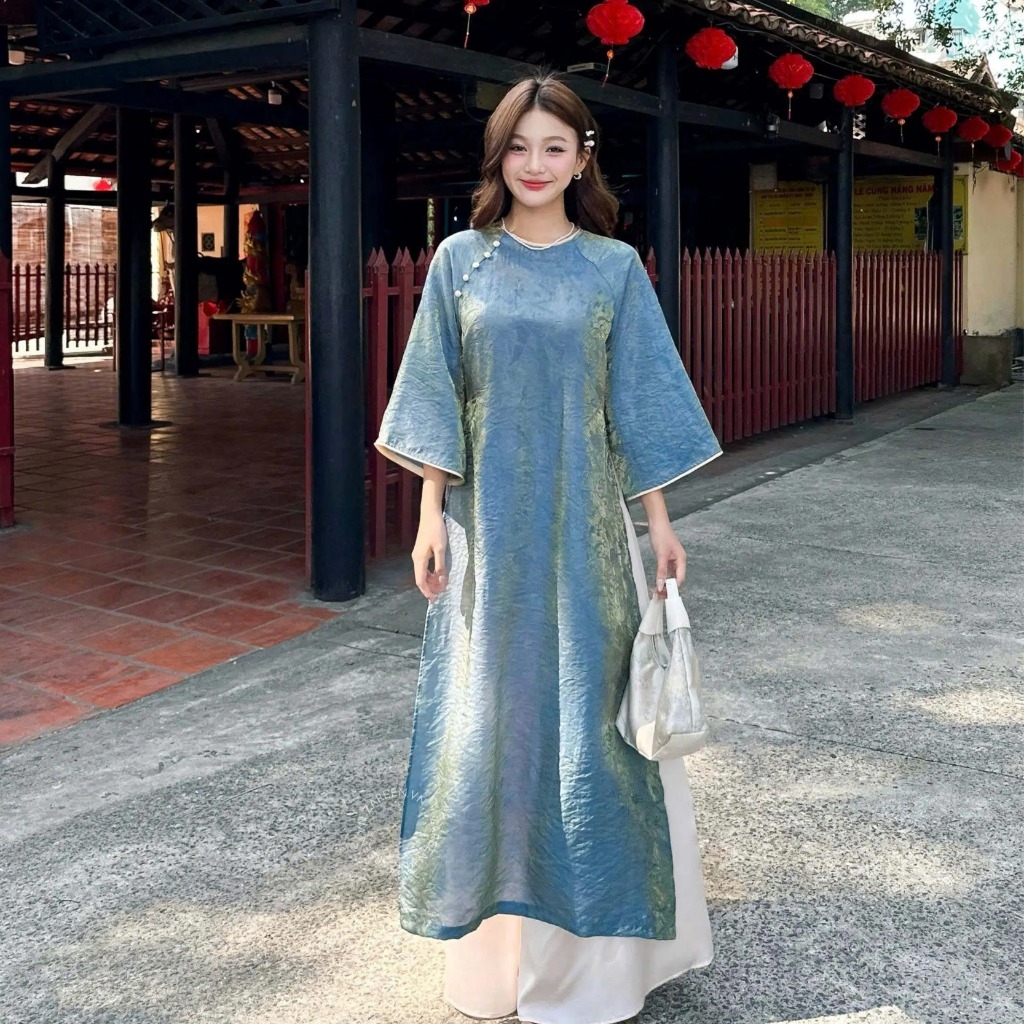 Mô tả: Form xòe, với thiết kế tà tăng hiệu ứng thướt tha, tạo cho người một vẻ đẹp mĩ miều nhưng đằm thắm.